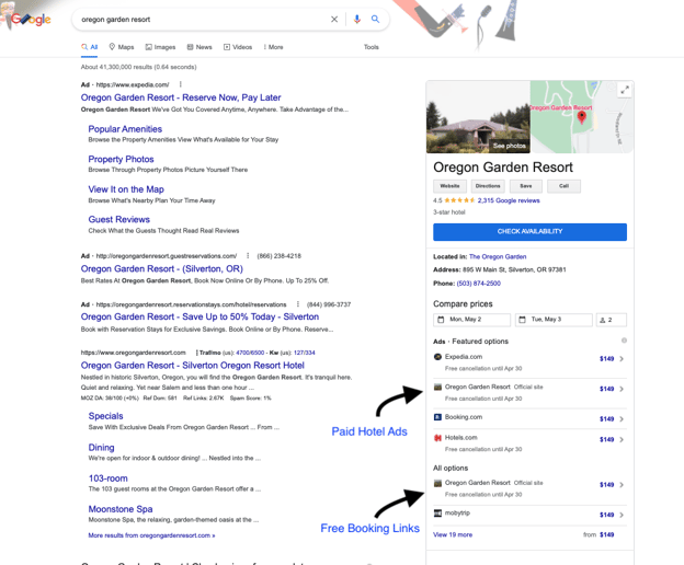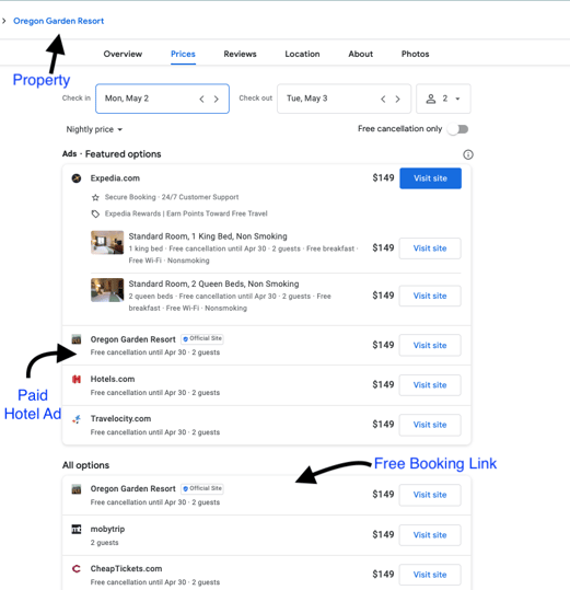 The difference between free booking links & paid hotel Ads in Google Hotel Search