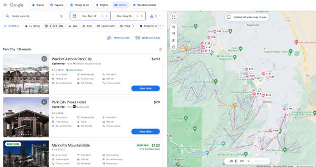 The king of metasearch for a reason. They dominate in terms of impressions, ease of access, and, therefore, reservation volume. That also means lots of competition, with often the highest CPCs of any channel. However, this should still be your top priority channel since you would be missing out on visibility on the most used search engine in the world.