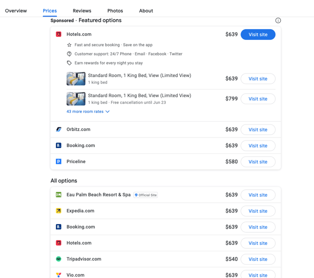 - Ensure your lowest rate is listed first - Google’s policies indicate your rate should be prominently displayed on your booking engine landing page and that the lowest rate (the rate shown in Google Hotel Ads) be the first listed rate available. It also helps ensure a smooth customer journey when the first price listed is the price they see in your booking engine.